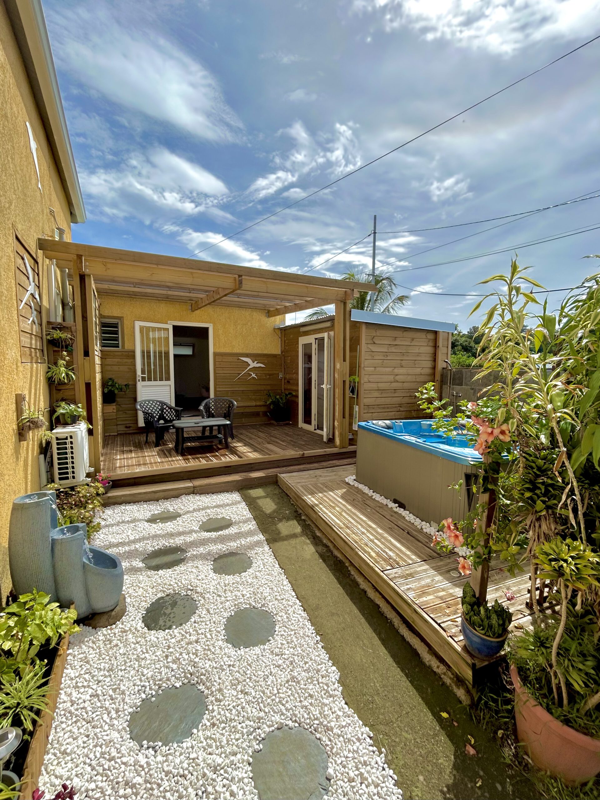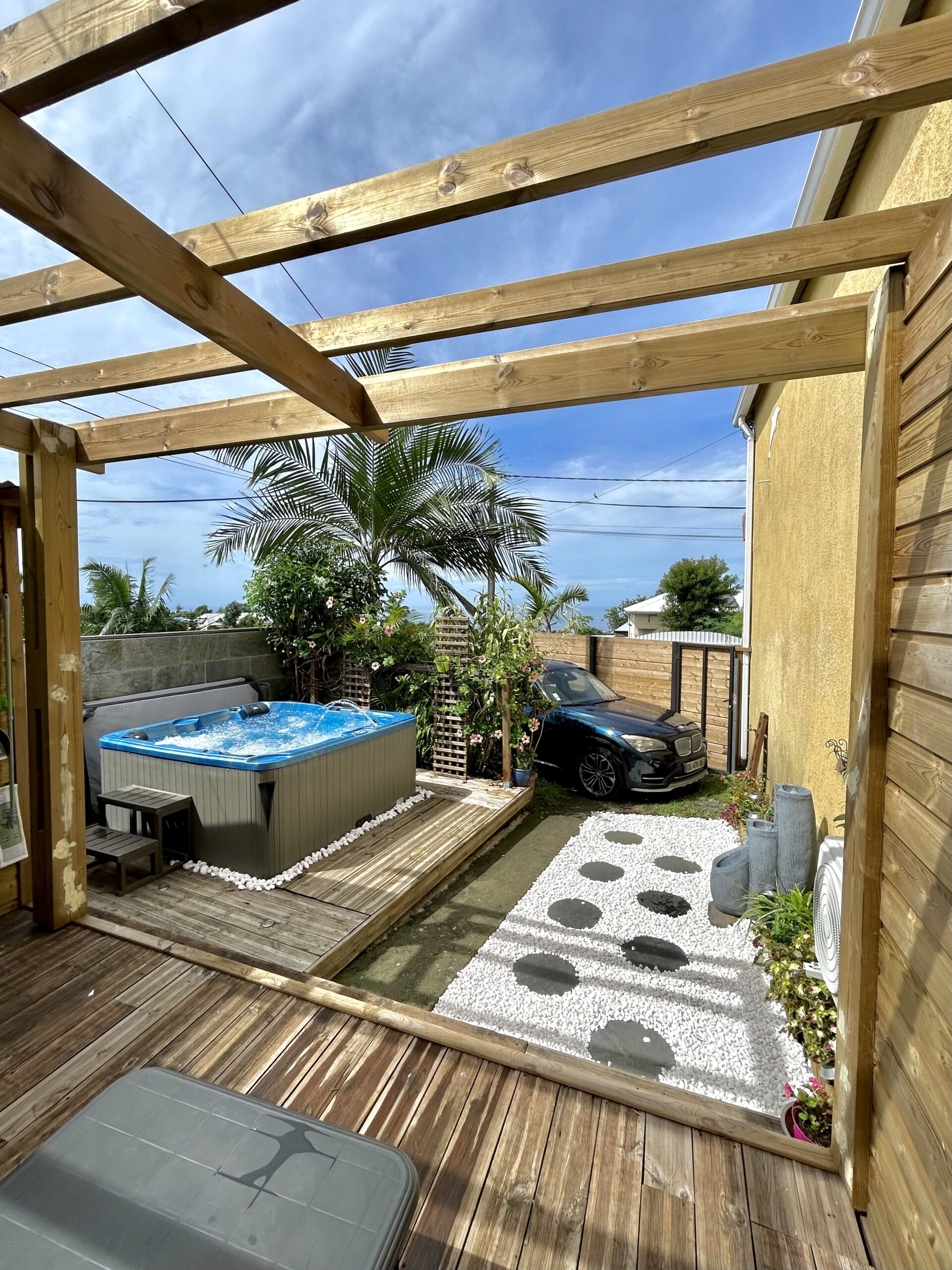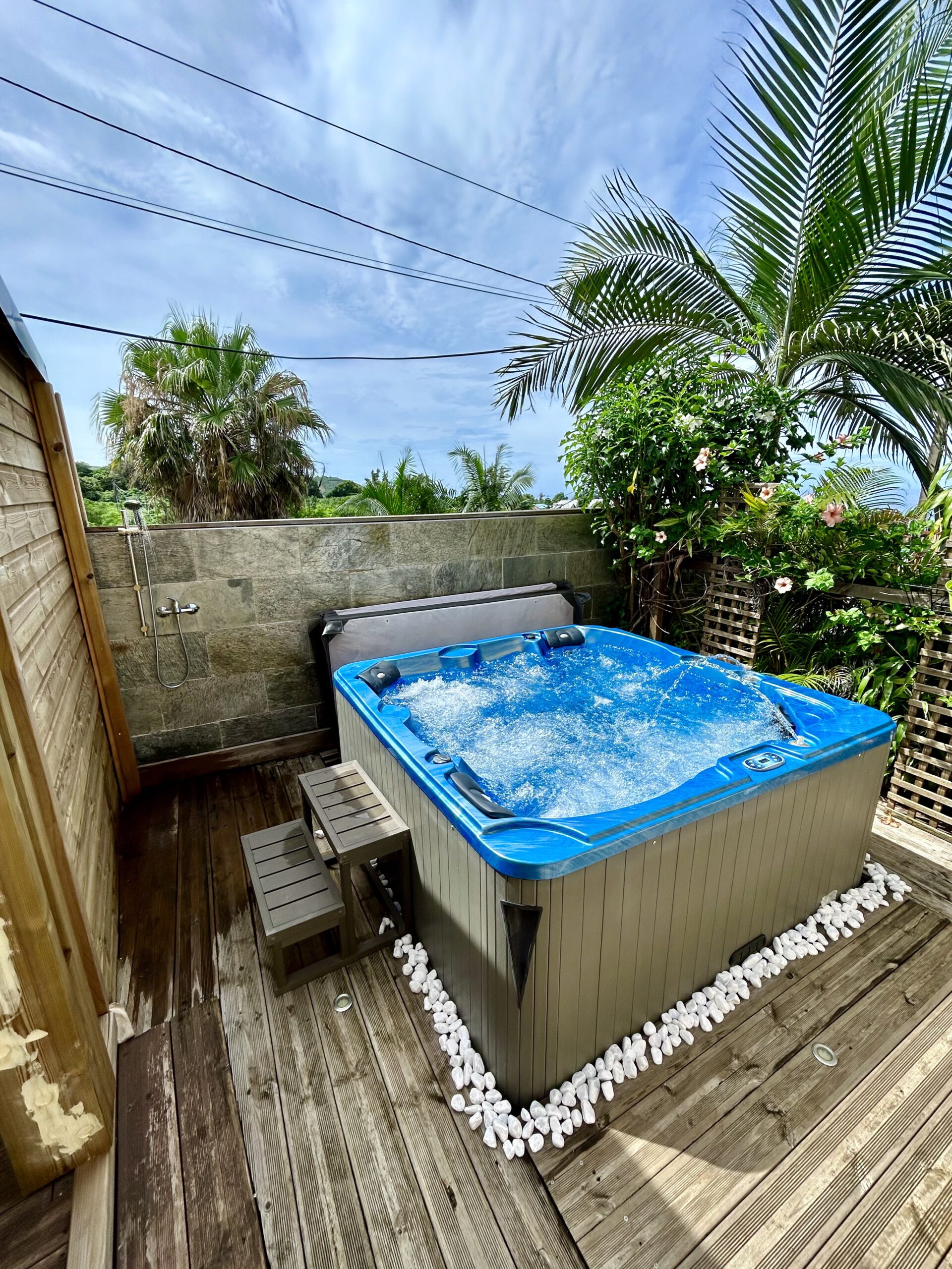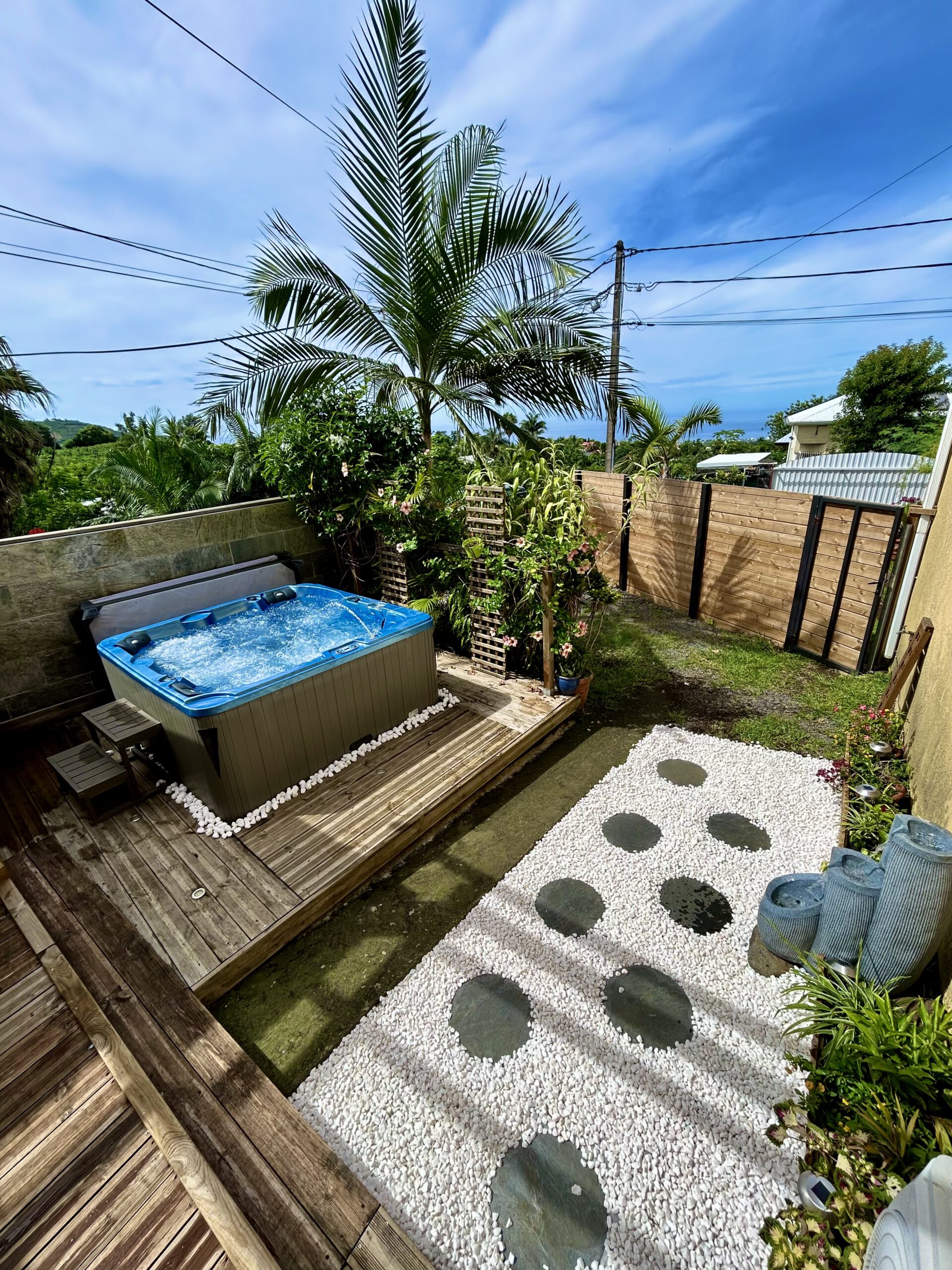 Au cœur de ce paradis vert, notre jacuzzi trône majestueusement, invitant à l’évasion totale.